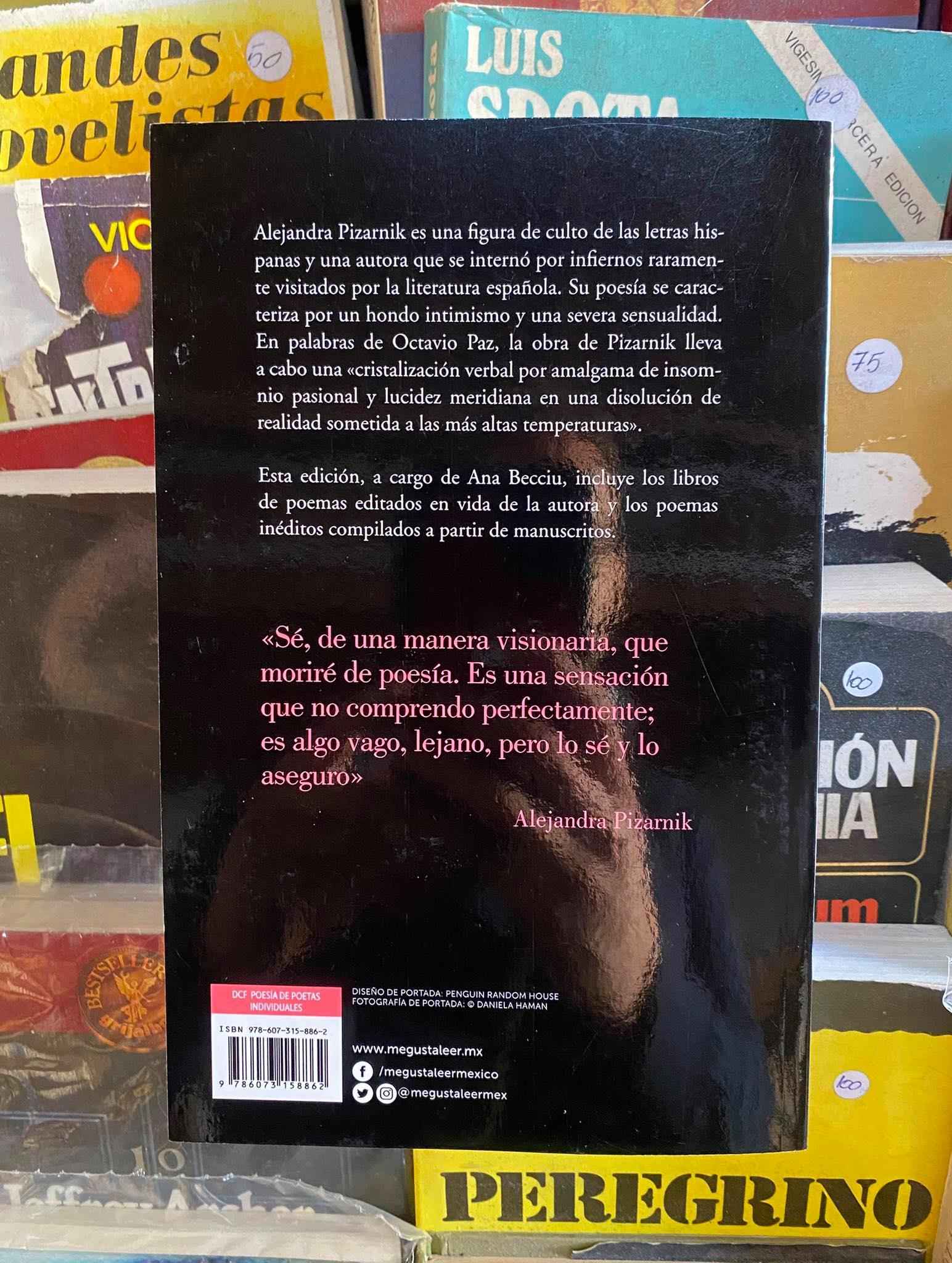 Alejandra Pizarnik es una figura de culto de las letras hispanas y una autora que se internó por infiernos raramente visitados por la literatura española. Su poesía se caracteriza por un hondo intimismo y una severa sensualidad. En palabras de. Octavio Paz, la obra de Pizarnik lleva a cabo una «cristalización verbal por amalgama de insomnio pasional y lucidez meridiana en una disolución de realidad sometida a las más altas temperaturas»